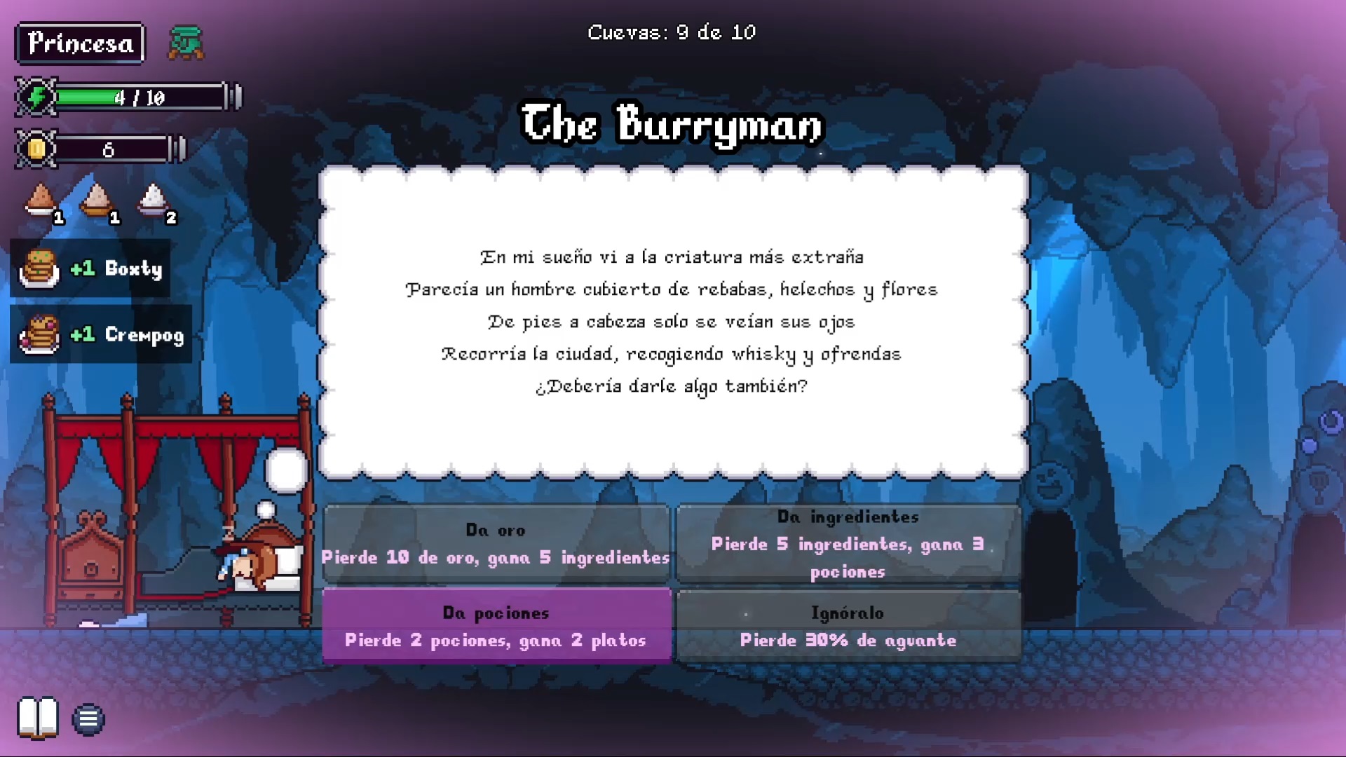 Una damisela quiere a su valiente príncipe azul, pero Arami le recuerda que aquí hay que cocinar para sobrevivir en Hungry Horrors.