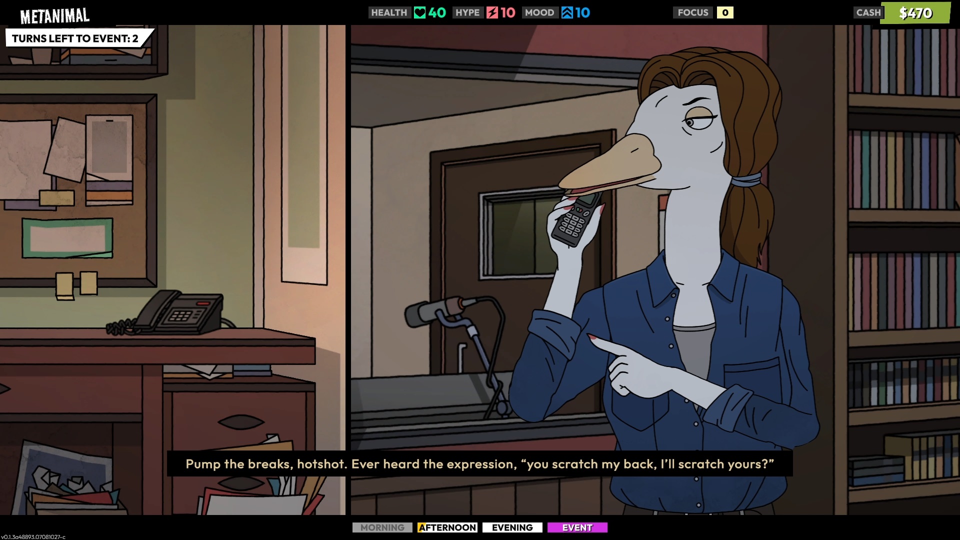 La demo de Rockbeasts nos pone en el papel de manager de una banda que busca fama, fortuna y éxito. Tu dinámica principal es hablar para organizar conciertos, apartar prácticas, agendar grabaciones e ir administrando el dinero. Pero no podrás hacer todo de una sentada, cada día tiene un número limitado de movimientos. Cuando interactúas con otros tendrás opciones de diálogo que afectarán el resultado de algunas situaciones y debes tener cuidado. Como te puede salir bien o todo irse al garete no solo con tus muchachos, sino también las relaciones laborales.