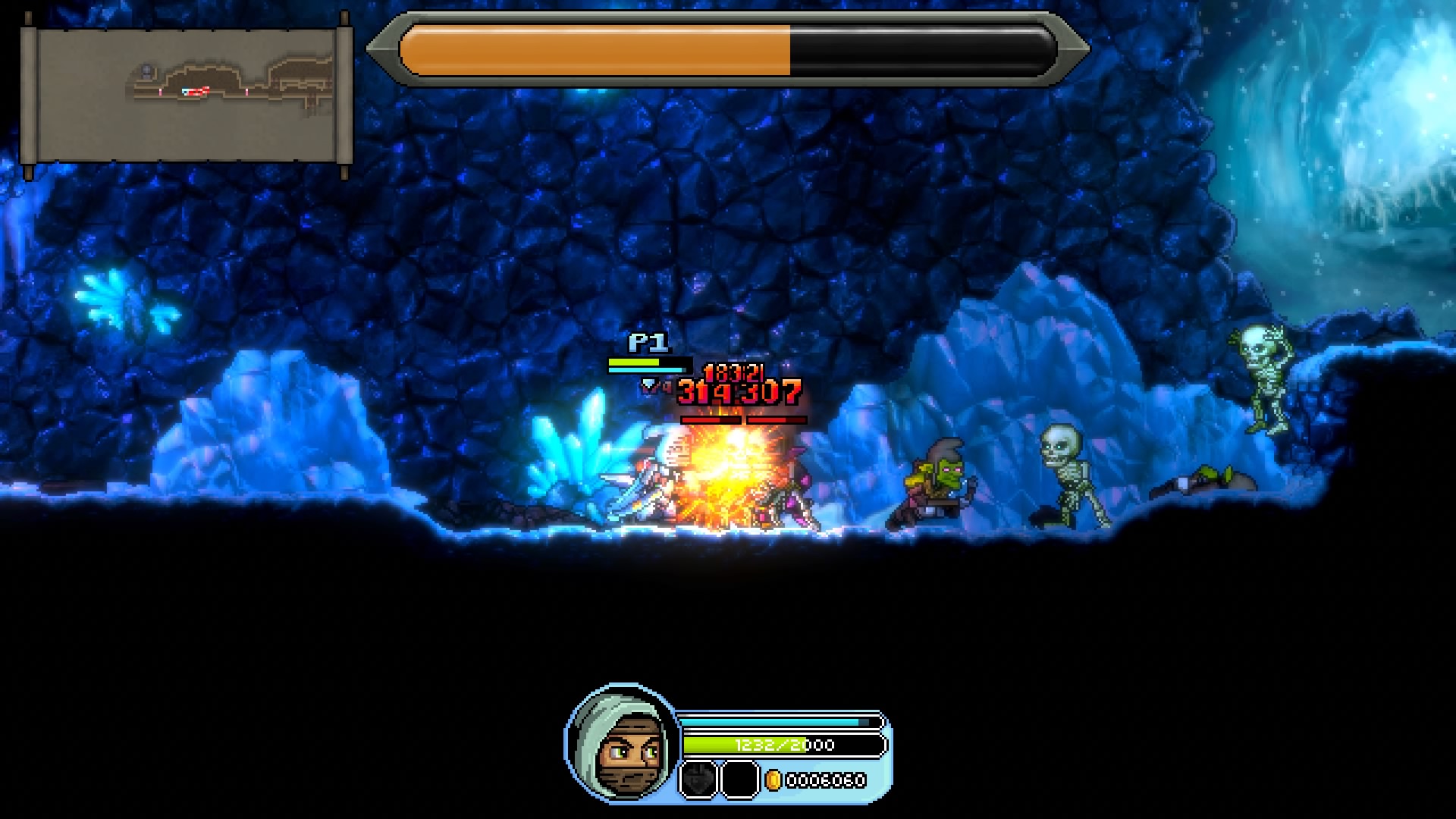 Cuando entras en las mazmorras te das cuenta de esta distinción 3D y 2D, los colores embonan perfectamente, esto no pesa directamente en el gameplay, ya que el juego sigue siendo en lateral, no se siente el fondo del escenario simplemente sigues derecho y saltas en el mismo sitio donde estás.