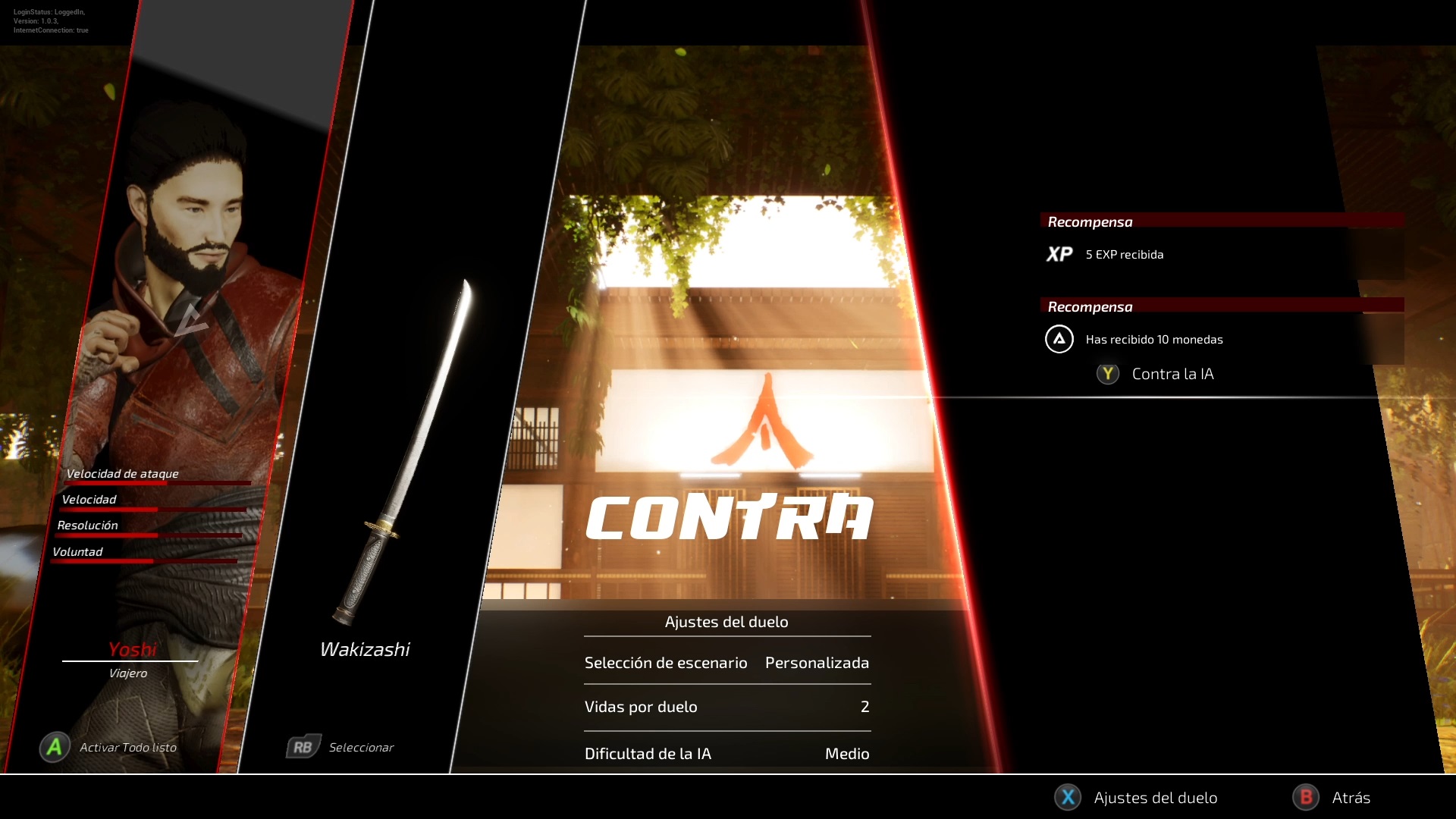 Empezamos con los duelos locales contra un amigo o la IA, cada uno otorgará experiencia para desbloquear diferentes cosméticos. Los combates se deciden por un solo golpe y aquel que gane más tantos de ronda será el ganador. No puedes atacar a lo loco, ya que todo consume resistencia, por lo que toca administrarla con cuidado. Solo se puede recuperar si desvías el golpe del contrincante usando la misma postura. Existe la posibilidad de realizar una ejecución animada al rival si el último golpe de una combinación logra acertarle. Sin importar el resultado vas a recibir experiencia, aunque es mayor si ganas el duelo. Cuando subes suficiente de nivel, vas a poder desbloquear otros modos que en un inicio no están disponibles. Lamentablemente no contaremos con una historia para ir conociendo de a poco a su elenco de luchadores.