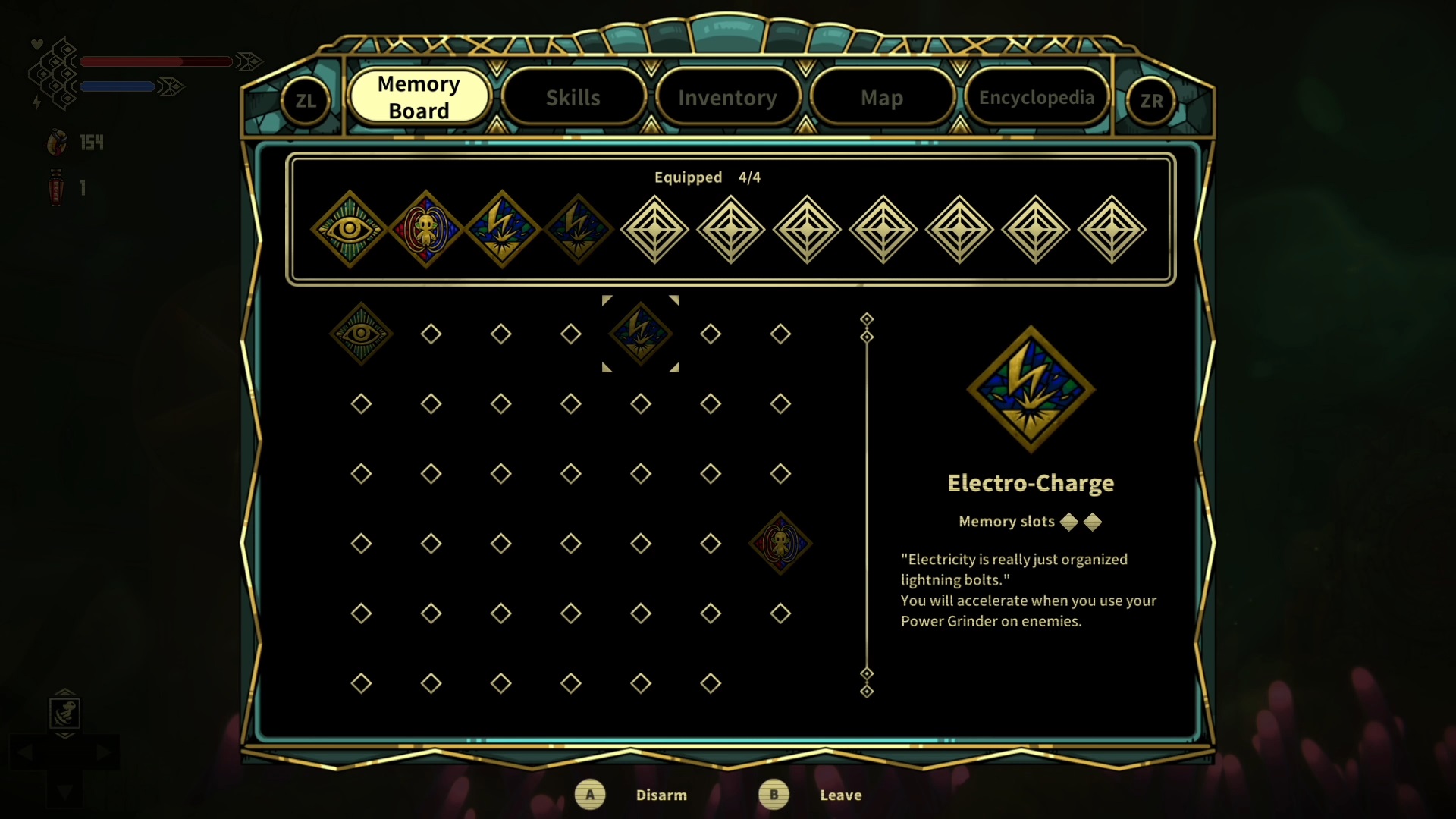 Conforme avances vas a desbloquear más habilidades que nos otorgaran más facilidades para lidiar con el entorno y los enemigos. El tablero de memoria se encarga de ampliar nuestras habilidades, siempre y cuando hayamos conseguido el módulo. Cada uno de estos requiere una cantidad de espacios para usar, por lo que debes escoger sabiamente que te sirve. A pesar de las mejoras que consigues, cabe mencionar que nuestra velocidad de movimiento no es muy buena. Durante los primeros compases de la aventura tienes una movilidad básica que no a todos les gustará. No existe el salto debido a que estamos debajo del mar, con un planteamiento lineal al principio.