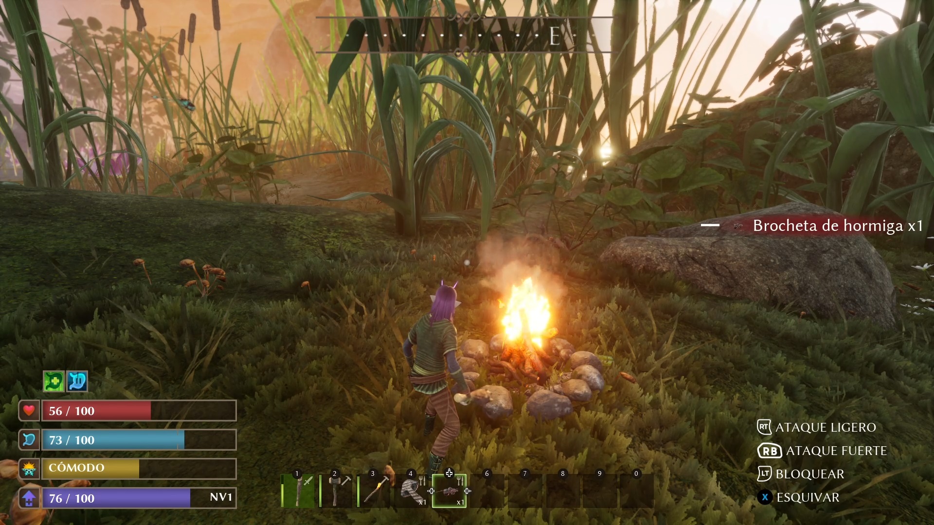Al combatir tendremos que medir la resistencia, ya que se consume si atacamos, esquivamos o nos defendernos. Todos los insectos de cualquier bioma son más grandes, rápidos, además de llegar en grupo para derribarnos. Cada uno de los insectos tiene una debilidad en su defensa junto a una resistencia ante cierto tipo de daño. Domesticarlos es una posibilidad a modo de monturas, solo hay que cuidar su vitalidad y alimentación para evitar que mueran. Por lo que toca conseguir los recursos para fabricar nuestro armamento con diferentes tipos de daño. Si quieres mejorar, te toca crear herramientas capaces de tallar las piedras necesarias para crear un mejor equipamiento. No solo hacen más daño, también ofrecen una mayor resistencia a romperse y mitigación del daño. También las armaduras paran por lo mismo, además de que les afecta el clima, creando un combate más táctico.