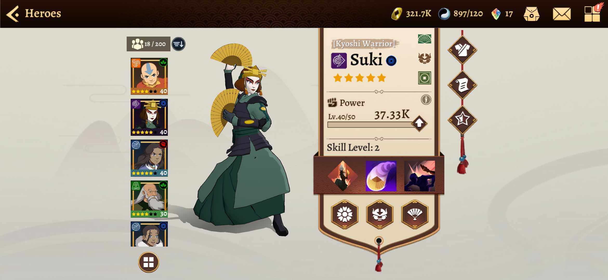 En Avatar Generations, los jugadores reviven el viaje de Aang y sus amigos mientras exploran las Cuatro Naciones en un juego móvil RPG por turnos y escuadrón. Los jugadores pueden reunir y personalizar su propio equipo mientras viajan a través del mapa dinámico. Se descubren todos los mejores momentos del universo Avatar, junto con contenido nuevo, los jugadores dominarán elementos y habilidades para equilibrar el mundo espiritual y físico.