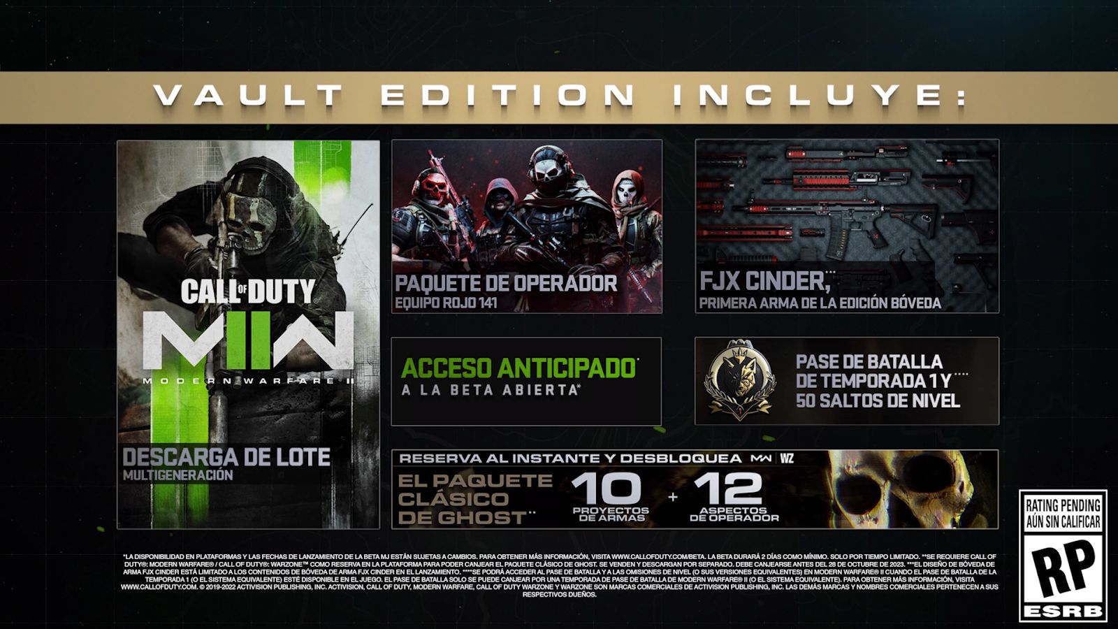 Asegúrate de tener la información oficial más reciente sobre Modern Warfare II; y todas las ediciones disponibles consultando el Blog de Call of Duty en las próximas semanas antes del lanzamiento.