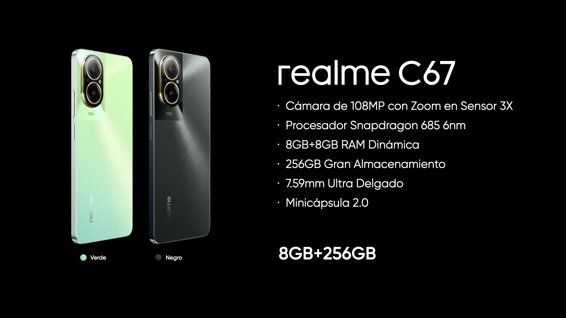 El realme C67 presenta una potente cámara de 108MP+, respaldada por un chipset Snapdragon de 6nm de última generación. Este dispositivo está diseñado para ofrecer un rendimiento excepcional, un diseño impresionante y una experiencia de usuario sin igual. Además, realme ofrece una garantía extendida en todos los países donde opera, brindando mayor tranquilidad a los usuarios.