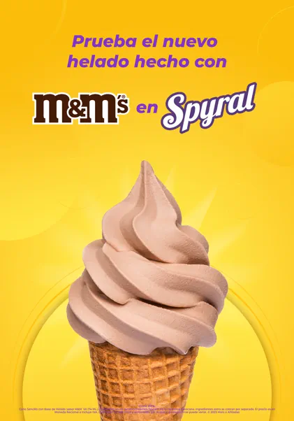 Descubre la nueva base de helado con chocolate M&M’s de Spyral, disponible en conjuntos Cinépolis seleccionados. Esta irresistible adición se une a la amplia variedad de sabores clásicos que Spyral ofrece desde su lanzamiento en 2008 en Morelia, Michoacán. Desde conos simples hasta lanzamientos especiales, Spyral se ha convertido en la opción número uno para los amantes del helado.