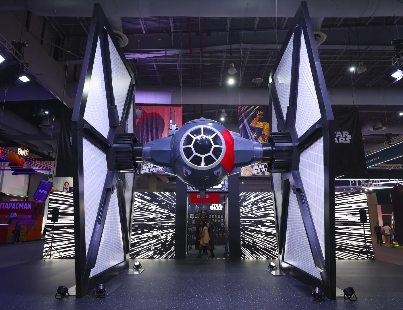 Una réplica de la nave Tie Fighter, de 7 metros de altura y 6 metros de longitud. Se convirtió en el escenario perfecto de una galaxia muy, muy lejana. Por su parte, la cabina de Radio Disney fue el espacio ideal para que los asistentes se convirtieran en locutores y compartieran con los radioescuchas la emoción de estar en CCXP México.