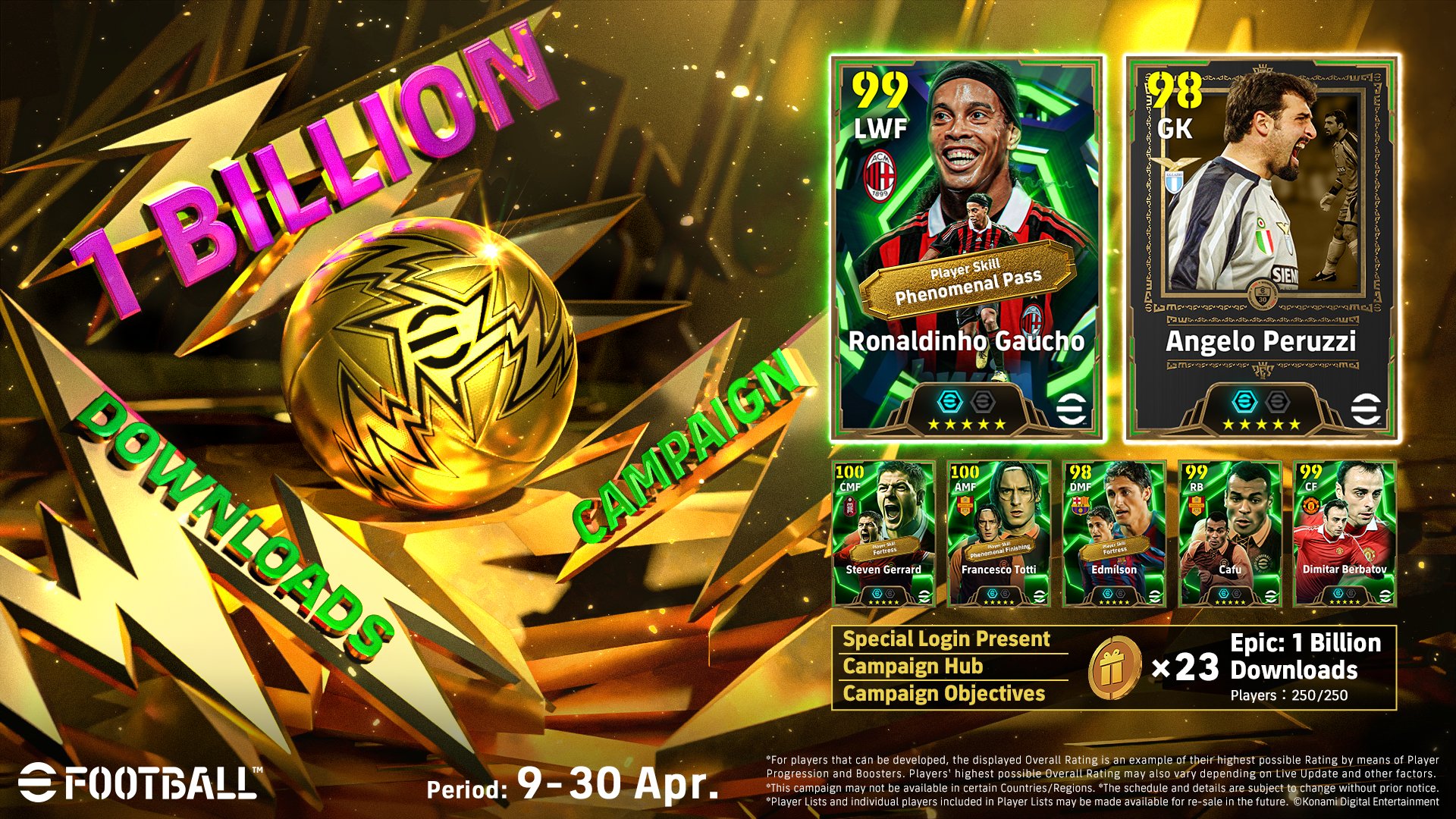 Konami celebra con una campaña especial que su título gratuito eFootball supera mil millónes de descargas en todo el mundo.