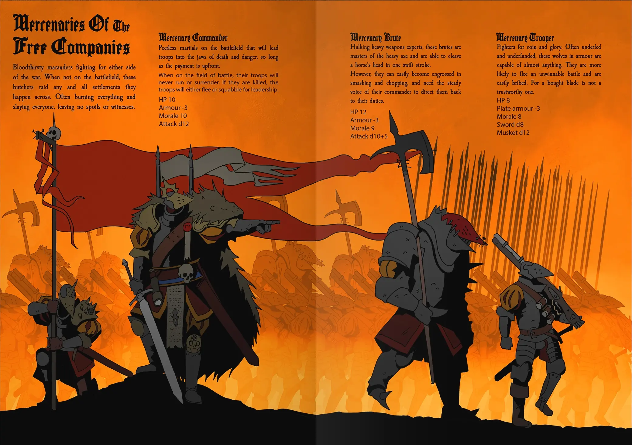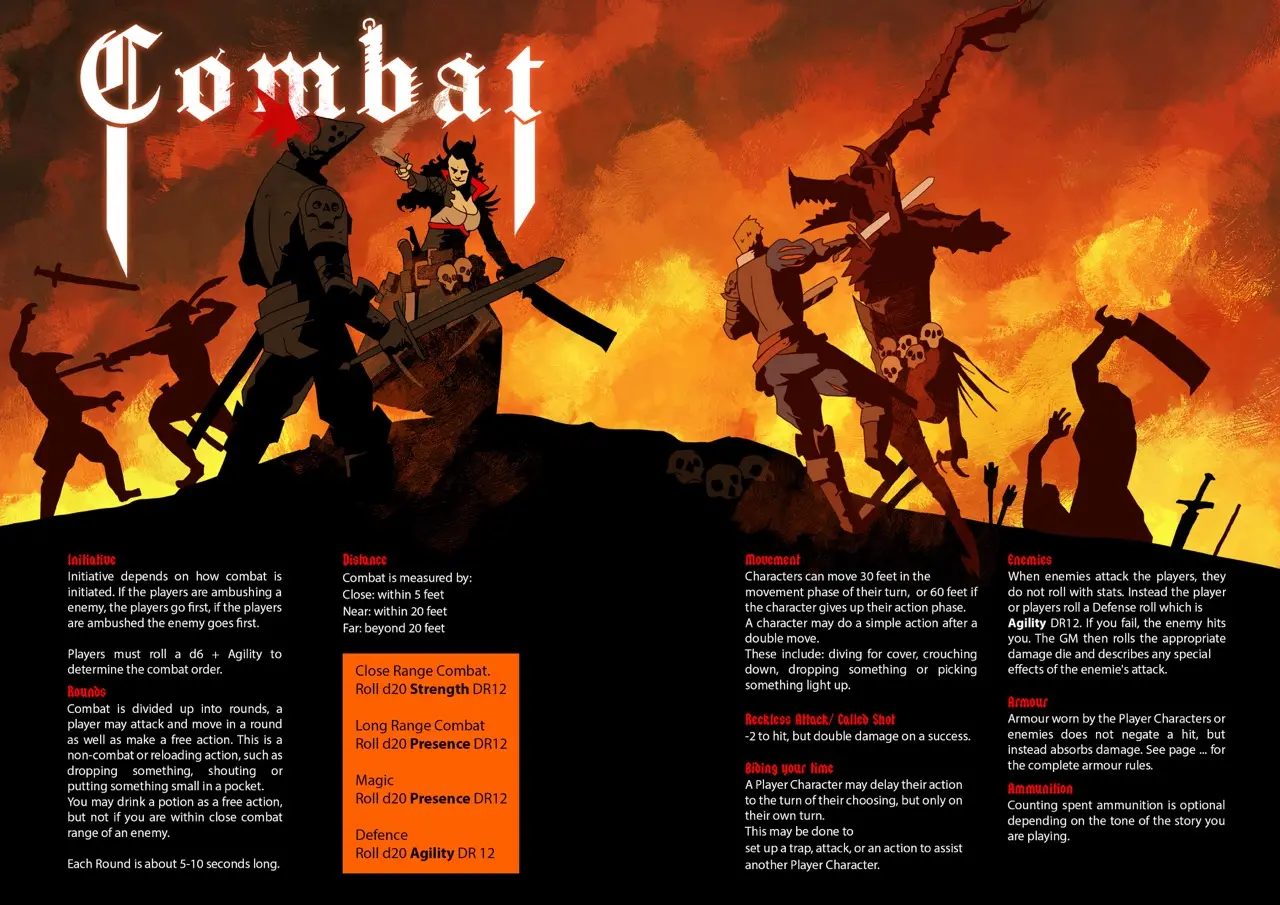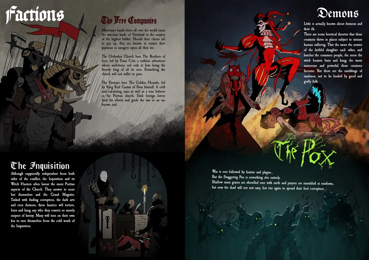 Esta caldera maligna de juego está repleta de lore, explosiones, magia, guerra y demonios. Escrito e ilustrado por Benjamin Tobitt, el juego será impreso y distribuido por Free League Publishing (Dragonbane, Vaesen – Nordic Horror Roleplaying, Blade Runner RPG, ALIEN RPG, The One Ring RPG).