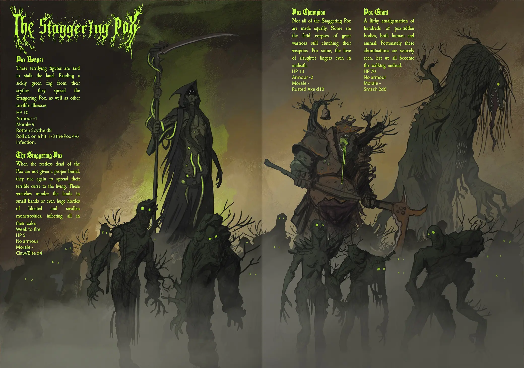 El juego infundido con pólvora y brujería es un RPG independiente completo basado en y compatible con el multi-premiado RPG de metal pesado apocalíptico MÖRK BORG.