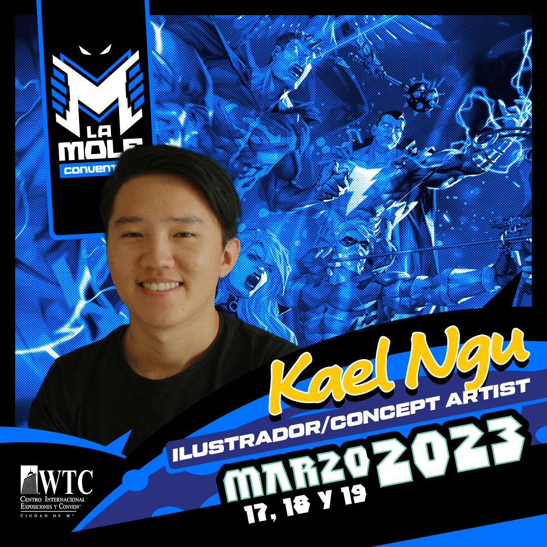 Desde Malasia nos visitará el artista conceptual Kael Ngu, quien inició su carrera haciendo arte para juegos de cartas; posteriormente trabajó para Marvel, DC Comics, Image Comics, Valiant Comics y Dynamite Comics, por mencionar algunas editoriales. Hoy en día, su amor por el manga y cómic lo ha llevado a crear diversas portadas, así como arte original para coleccionistas privados de todo el mundo.