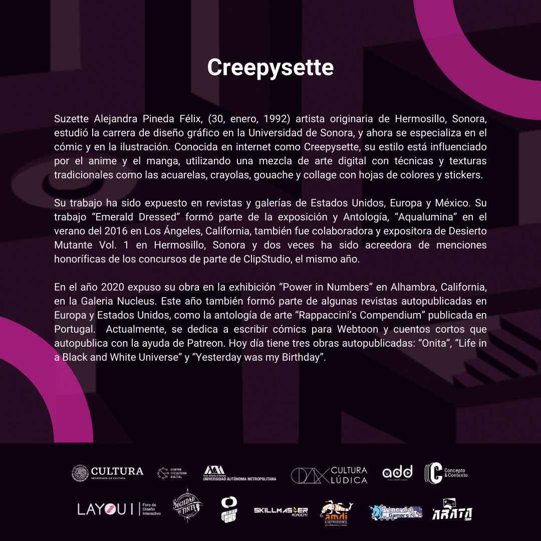 Finalmente, Sociedad de Tinta agrupa a destacadas ilustradoras mexicanas que compartirán sus experiencias y conocimientos en la ilustración y gráfica nacional. Además, abordarán cuestiones éticas y sociales dentro de la industria del cómic, presentando un enfoque crítico y valioso para todos aquellos interesados en la evolución de la narrativa gráfica en México.