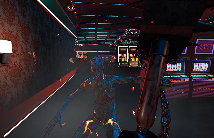 Hellbreach: Vegas es un FPS de supervivencia por rondas de zombies que recuerda mucho a COD Zombies teniendo zonas desbloqueables con puntos al eliminar enemigos, mejoras (perks), rondas especiales, objetivos a conseguir y un dispensador de armas aleatorias que es muy similar a la famosa caja de COD.