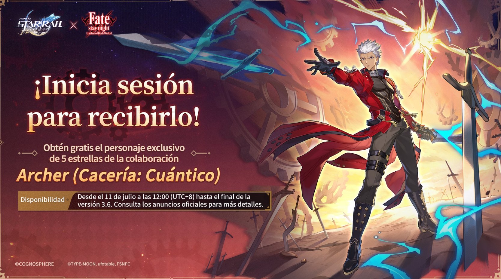 Desde el inicio de la colaboración con Fate/stay night el 11 de julio hasta el final de la versión 3.6, inicia sesión en el juego para obtener gratis al personaje exclusivo de 5 estrellas de la colaboración Archer. Cabe destacar que los banners de personajes y conos de luz de esta colaboración estarán disponibles a largo plazo después del inicio del evento.