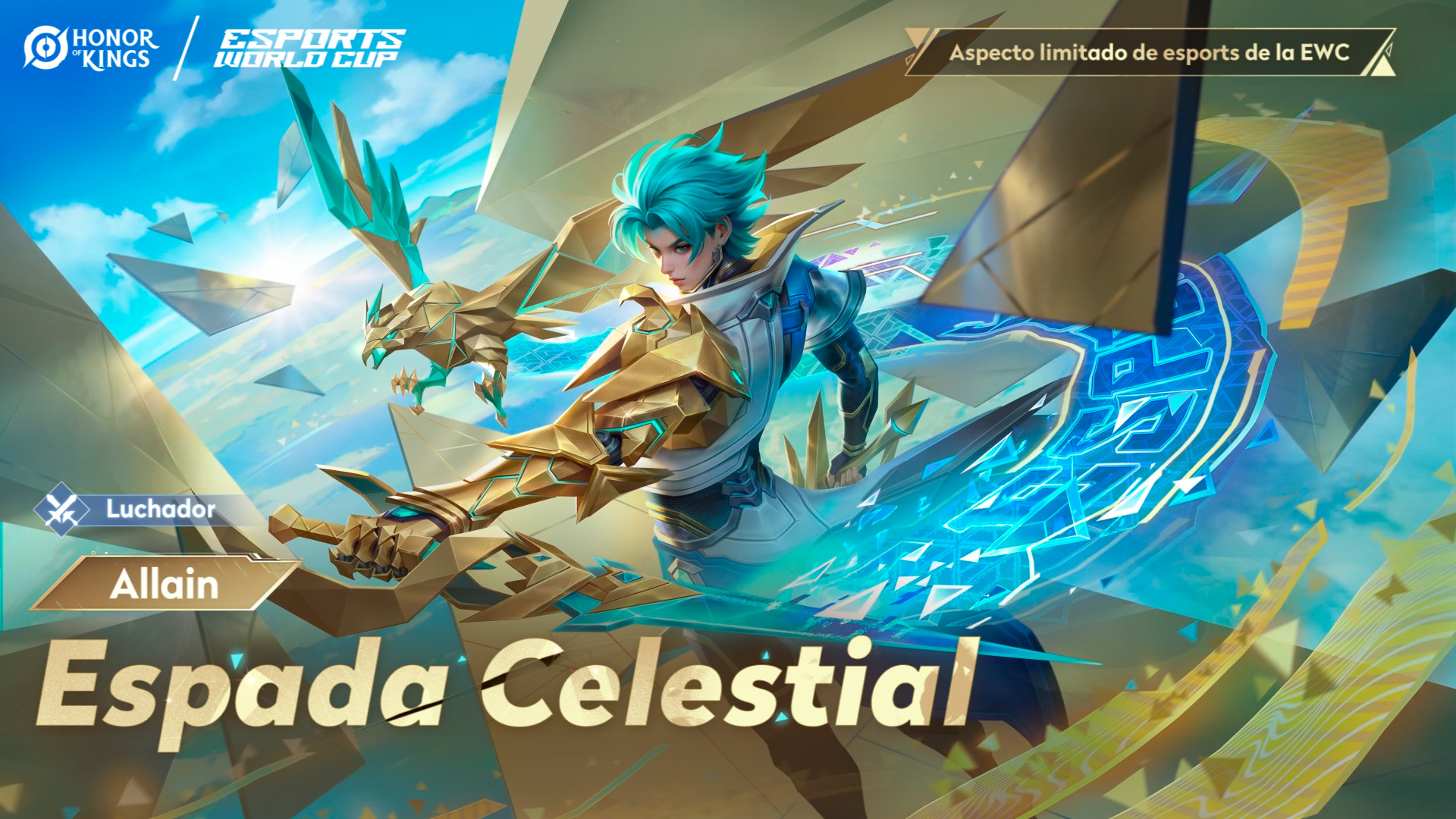 Level Infinite regaló una skin fabulosa de uno de los personajes más queridos de Honor of Kings con tan solo participar en eventos dentro del juego. Allain obtiene una nueva animación de recuperación y también se cambiaron las animaciones de sus habilidades mientras usa el aspecto Allain «Espada Celestial». Los cambios más sorprendentes de animación son los de su segunda habilidad y su Ultimate. Cuando Allain llega a su destino usando la segunda habilidad, un pájaro parece extender sus alas. Por otro lado, cuando usa su habilidad Ultimate, las palabras «Esports World Cup» aparecen en el centro del área de efecto de la habilidad.