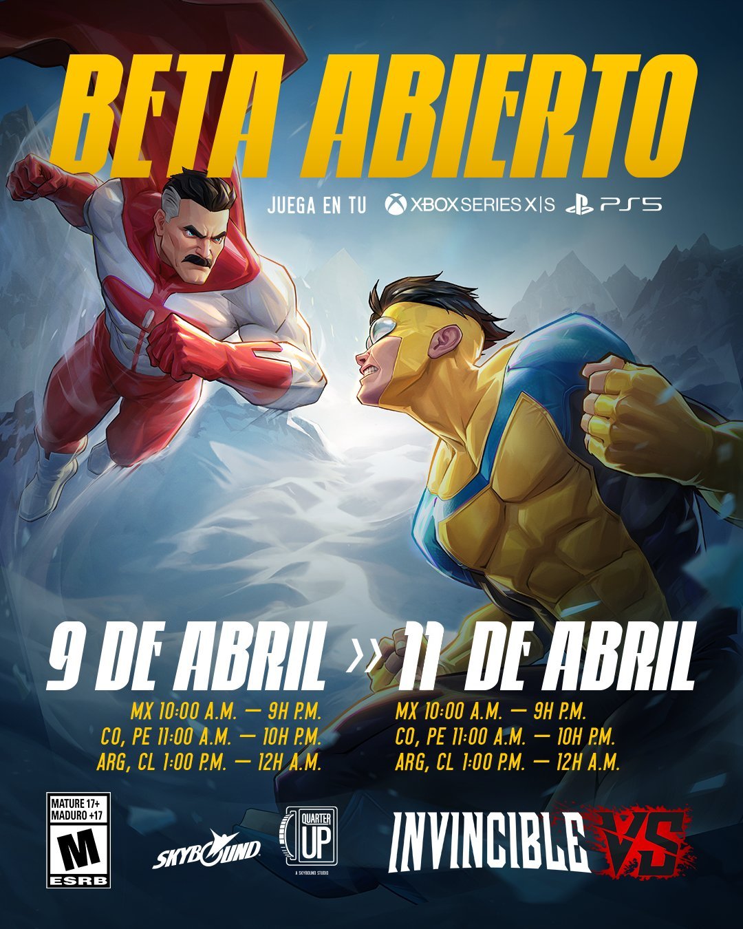 Tendremos tres días para probar el juego como antelación a su lanzamiento del 9 al 12 de abril. Van a poder participar todos los jugadores de PlayStation 5 y Xbox Series. Una buena forma de adentrarse al juego de lucha por equipos ambientado en este universo. Contaremos con 10 personajes jugables del elenco base: Estará disponible nvincible, Atom Eve, Bulletproof, Thula, RexSplode, Battle Beast, Omni-Man, Robot, Monster Girl y Allen el Alien.