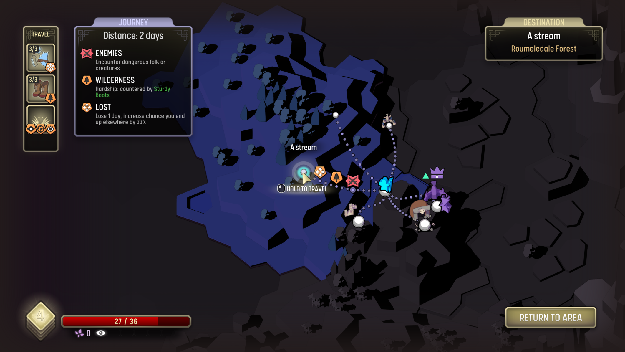 Entre lo más destacable de los cambios, además de lo que comentó Joris Dormans, es un indicador de riesgo visible mientras se acampa; lo que facilita esperar a los enemigos en el área. También el equipo de viaje y las habilidades relevantes serán visibles durante los trayectos; estos comunicarán su estado actual para mayor facilidad del usuario.