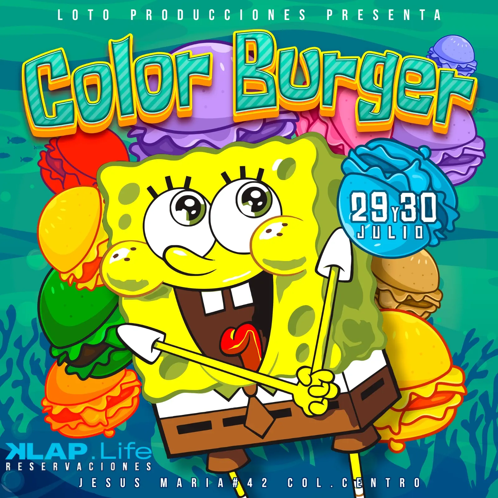 El 29 y 30 de junio se llevará a cabo la primera edición del Color Burguer Fest un festival temático donde las hamburguesas son el eje central de la mano de uno de los personajes más icónicos de la cultura y estamos hablando del mismísimo Bob Esponja.