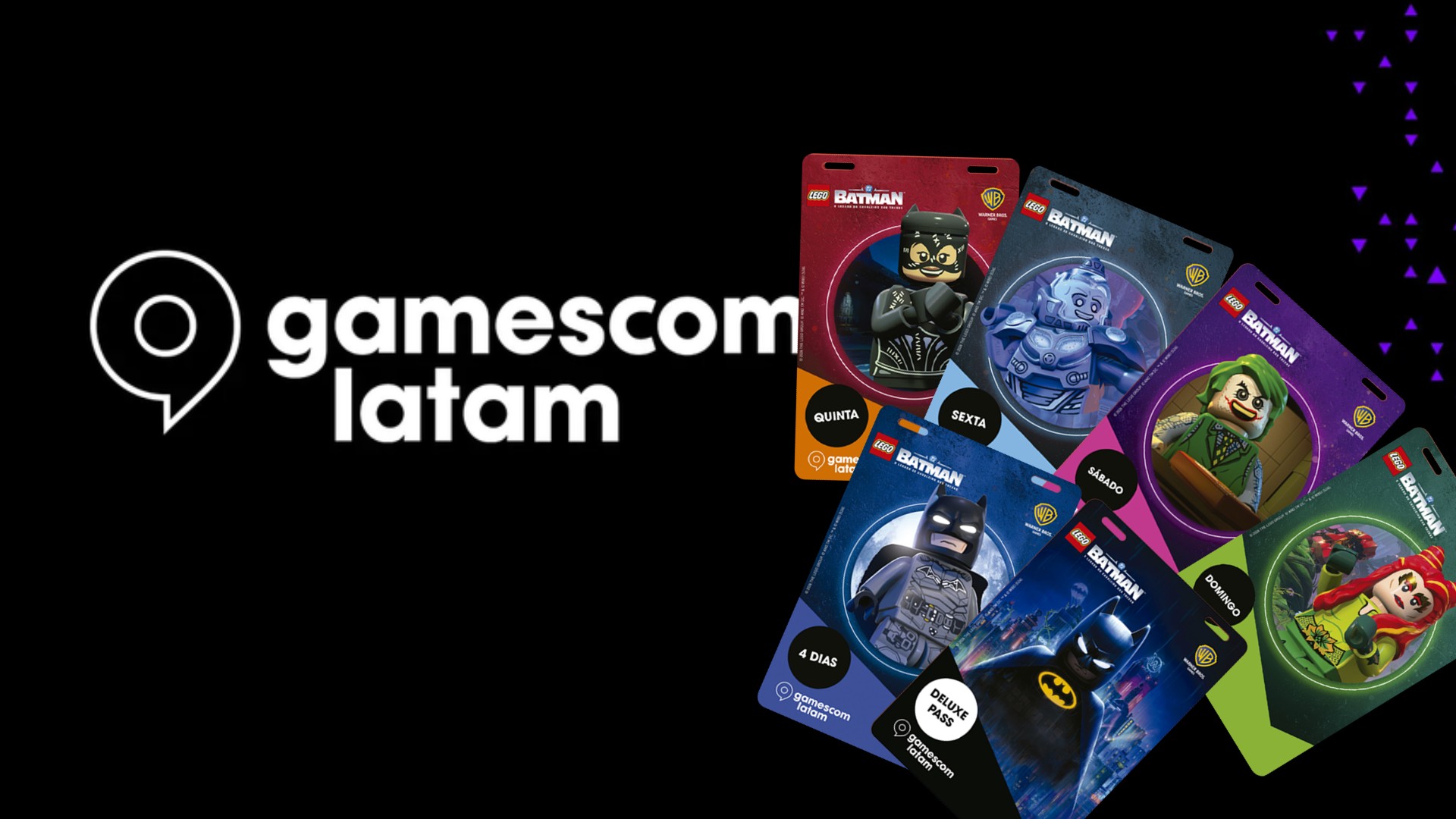 El juego de LEGO Batman: LOTDK tiene el honor de ser la imagen de los gafetes oficiales de la Gamescom Latam 2026.