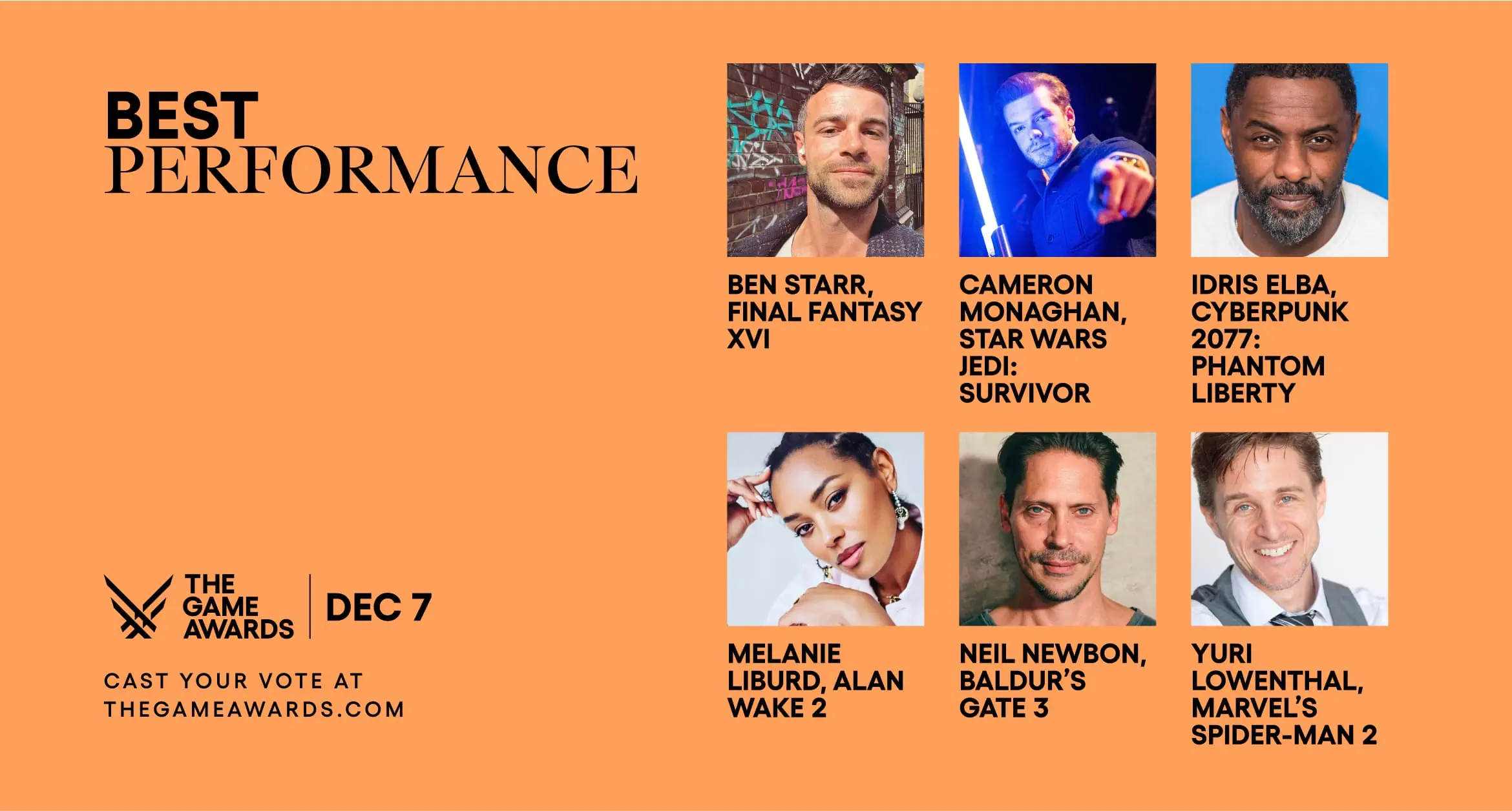 Las categorías incluyen Mejor Narrativa, Mejor Interpretación para Idris Elba como Solomon Reed, Mejor Apoyo de la Comunidad y Mejor Juego Continuo.
