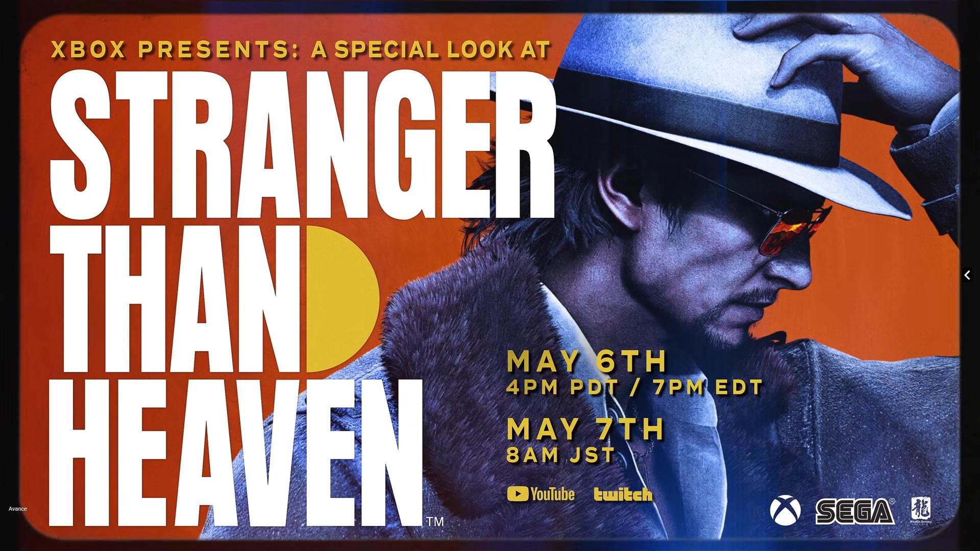 El miércoles 6 de mayo a las 5:00 PM hora de CDMX vamos a tener un programa especial. La segunda muestra del proyecto especial del estudio RGG en “Xbox Presents: A Special Look at STRANGER THAN HEAVEN”. Nos llevan al interior de las mentes detrás del juego con detalles y perspectivas sobre la historia, mundo y personajes. Mucho más vamos a tener de la mano de los desarrolladores, además del reparto que nos trae este ambicioso juego.