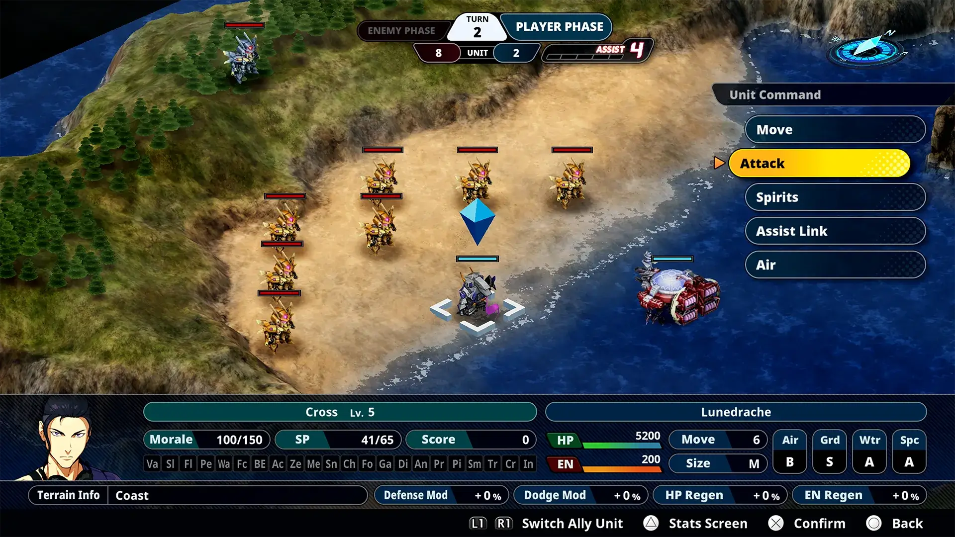 SUPER ROBOT WARS Y se sostiene sobre un sistema de combate por turnos en cuadrícula, donde la planificación estratégica define cada enfrentamiento. La clave no está en la velocidad, sino en la lectura del campo de batalla, la gestión de recursos y la optimización de habilidades.