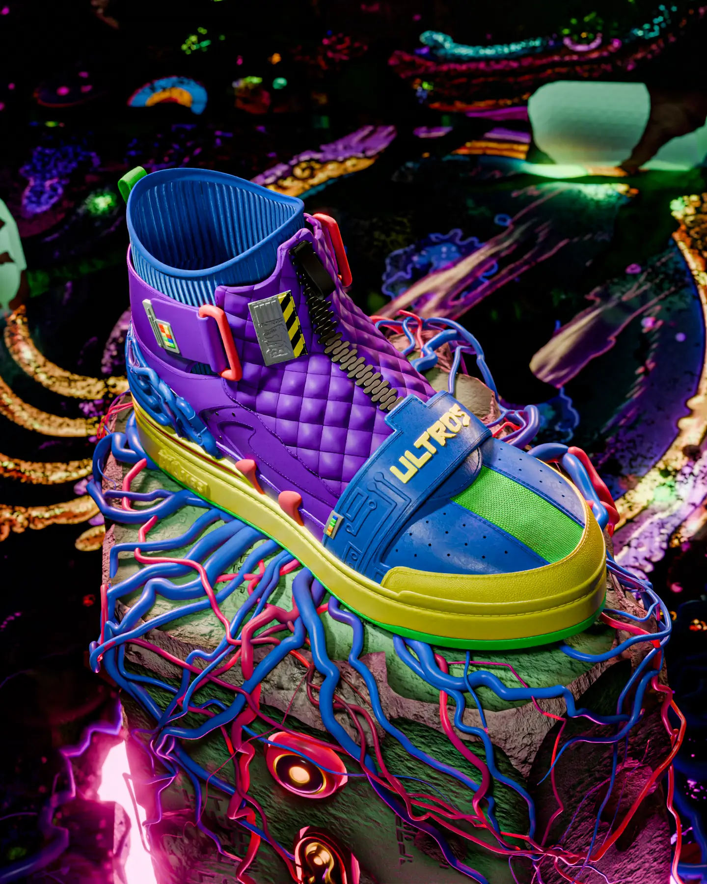 La colaboración con Bull Airs lleva la experiencia de ULTROS más allá de la pantalla, ofreciendo una línea de tenis inspirados en el juego. Thomas Bulman diseñó los tenis que capturan la esencia y la vida del entorno de ULTROS, fusionando la creatividad del juego con la moda urbana.
