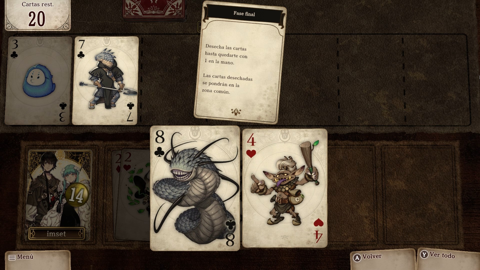 Por cierto, el juego de cartas, dentro del juego de cartas. Continúa en el título e iremos desbloqueando algunos extras, como la nueva regla “con técnicas” el cual ahora los naipes tienen efectos. O un modo de competición en el que pueden participar hasta cuatro jugadores de manera local con las mismas reglas y pasando el control por orden.