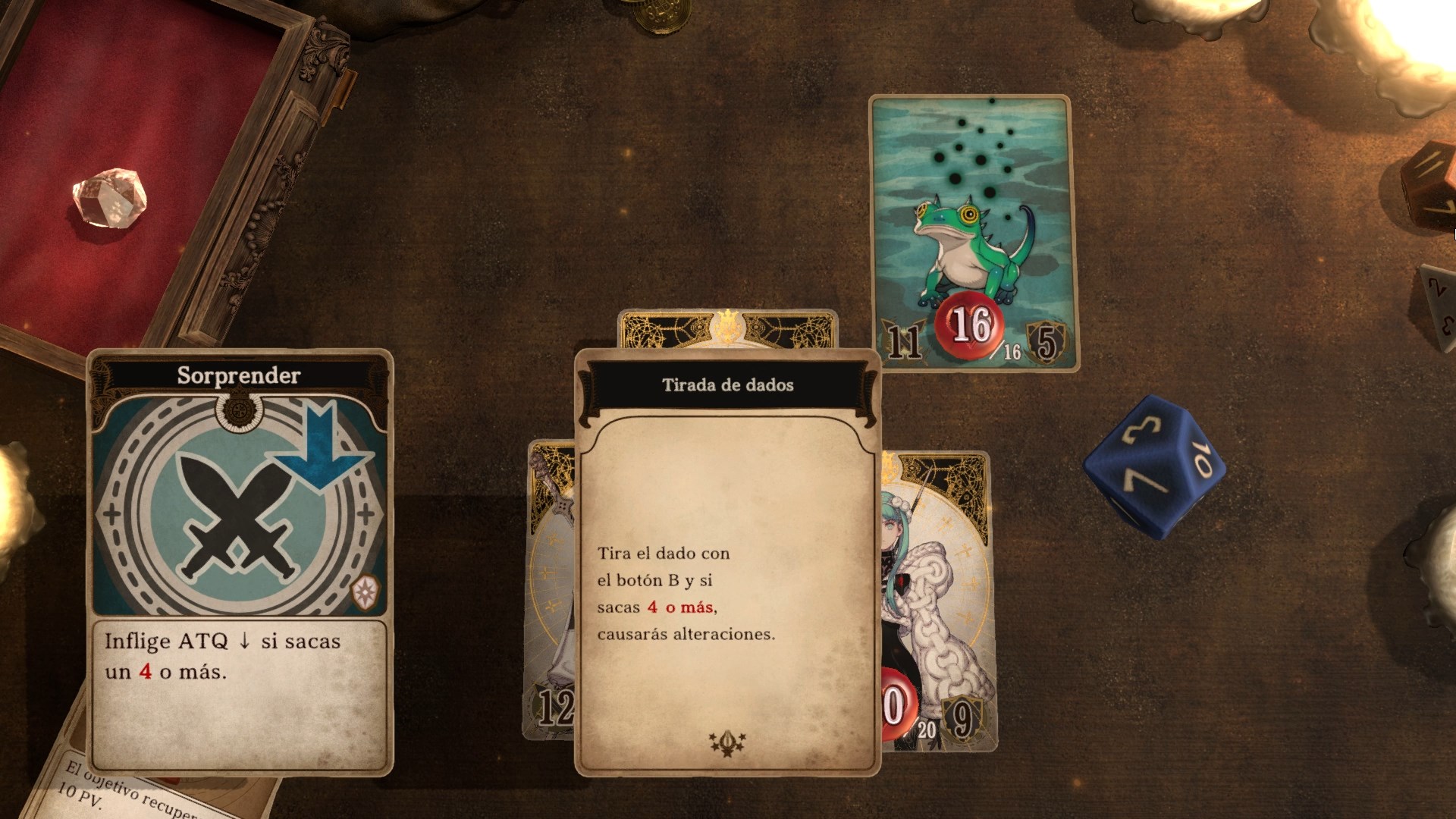 Pero la base del juego continúa ahí, tenemos un poder de ataque, defensa y vida. Los movimientos especiales se rigen por un número determinado de cristales; hay enemigos que son débiles a ciertos elementos, y hay habilidades que tienen un extra si el jugador saca un número determinado. Aunque hay seres que son resistentes a estos ataques.